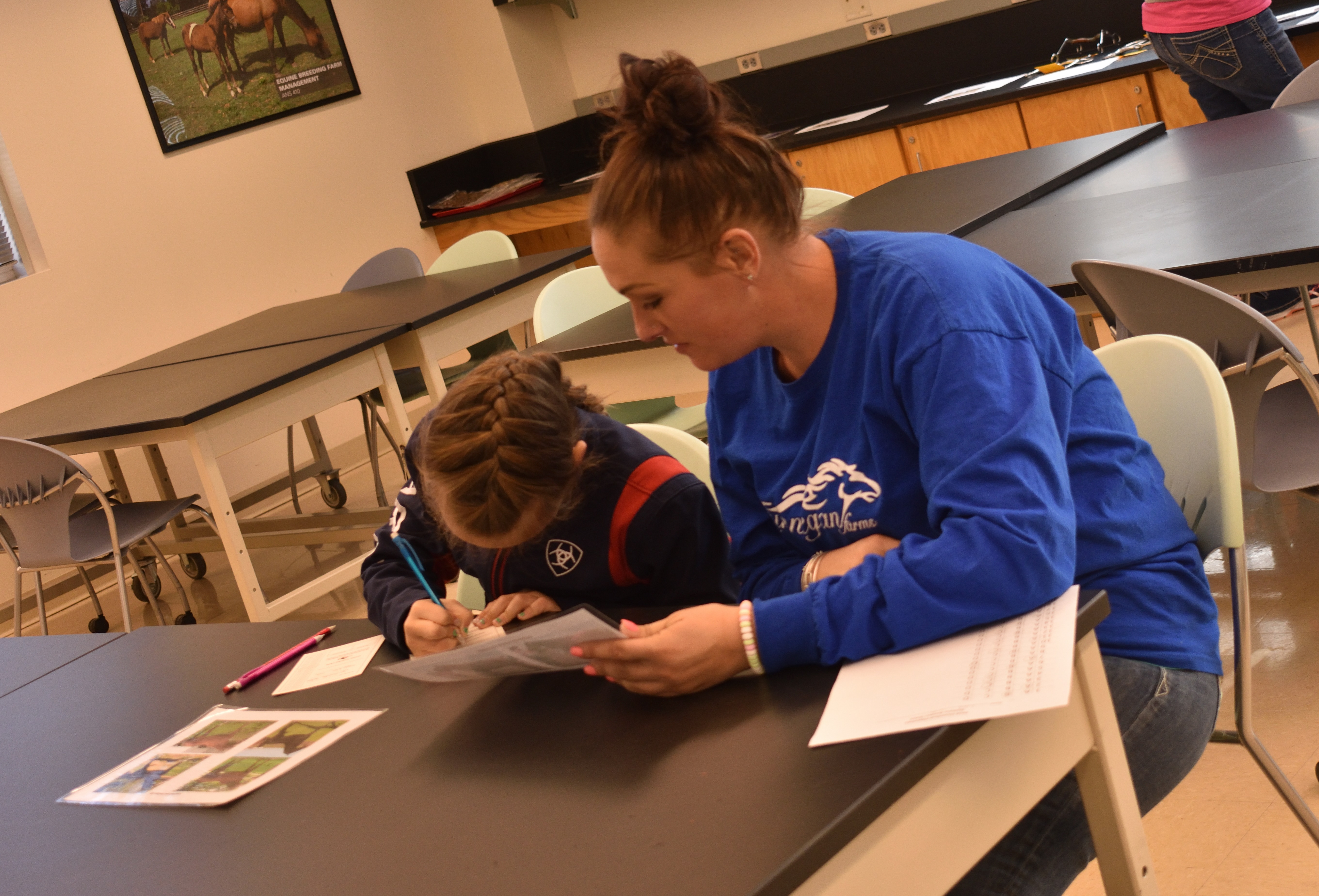 Collapse ▲The future champions of the NC State 4-H Hippology Contest participated in the first annual Cloverbud Hippology event held at the state level. Eleven youth from seven different counties navigated twenty stations of questions which tested their knowledge of horse breeds, tack, parts of the horse and feeds. The youth also judged and placed two halter classes of Quarter Horse Geldings and Saddlbreds in Hand.