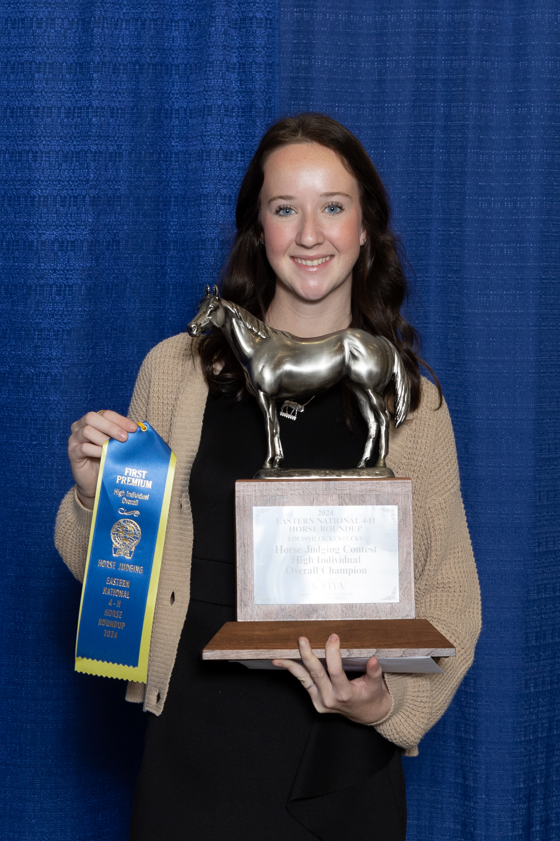 At the Eastern National 4-H Horse Roundup, the team finished 3rd Overall, 1st in Judging, 3rd in Written and Stations, and 7th in Team Problem. Individual honors were as follows: